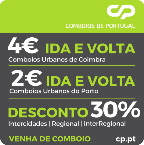 - Bilhete especial 4€ nas viagens ida e volta nos comboios de serviço Urbano de Coimbra;